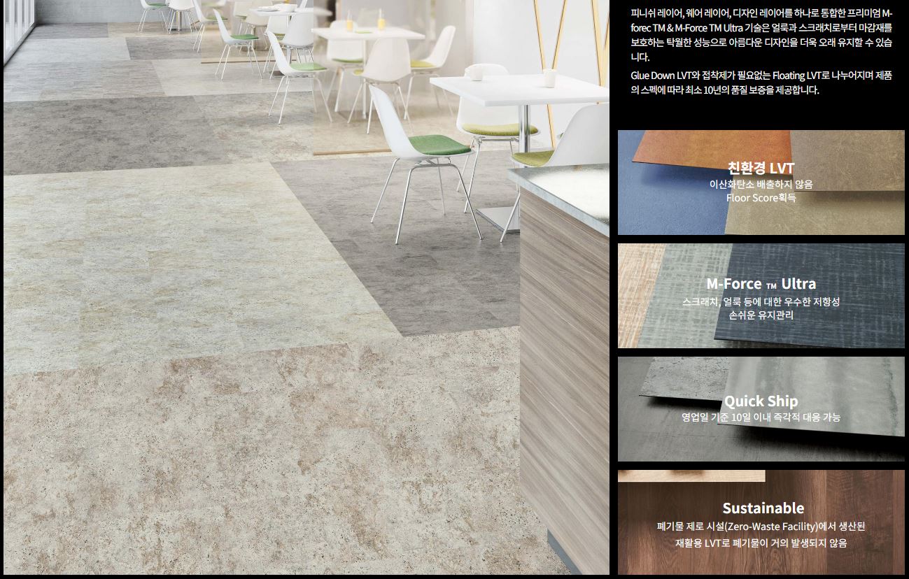 지난해 기준 LVT 세계시장 점유율 1위(상업용 기준 20%) 브랜드로 다양한 제품군을 보유하고 있다.